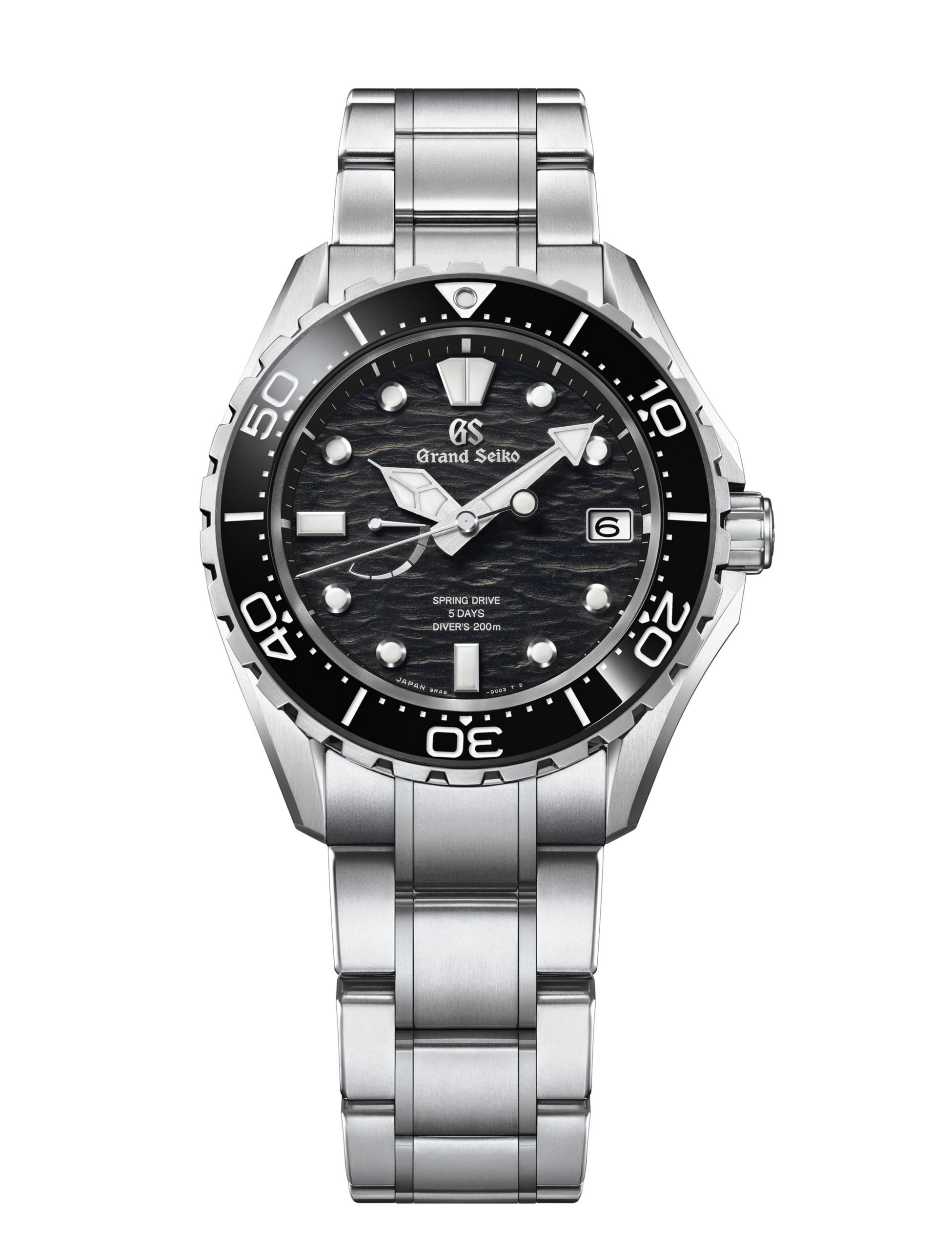 Este es el reloj Grand Seiko Diver que funciona con Spring Drive Caliber 9RA5, que ofrece una tasa de precisión de ± 10 segundos por mes y una reserva de marcha de cinco días. Está hecho de titanio de alta intensidad, un material que es un 30 % más liviano que el acero inoxidable e incluso más impermeable a los rasguños y la corrosión. Para mejorar aún más su durabilidad, el bisel giratorio es de cerámica para proteger el reloj de arañazos.