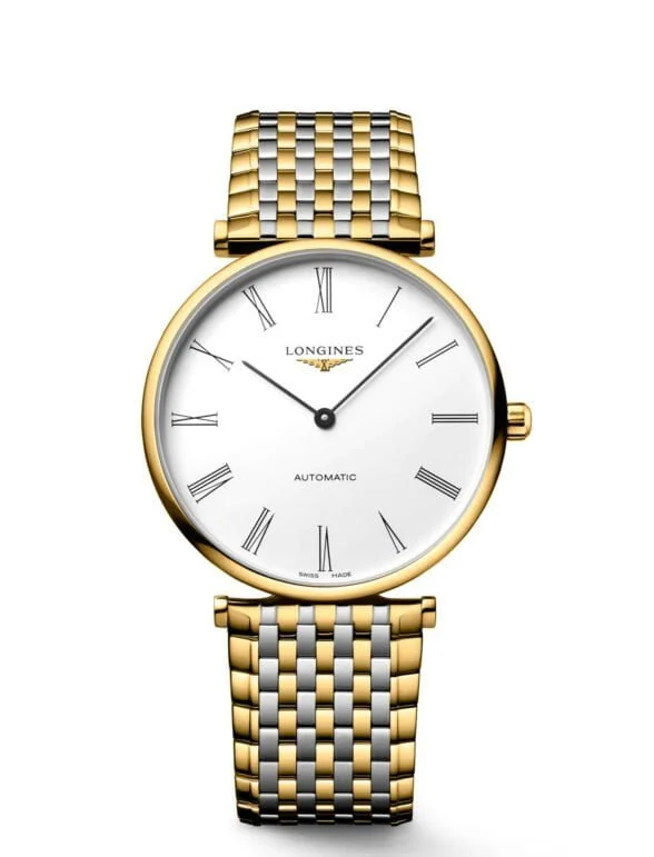 | Caja | Revestimiento PVD amarillo / 38 mm / Esfera blanca mate con romanos pintados / Cristal de zafiro |