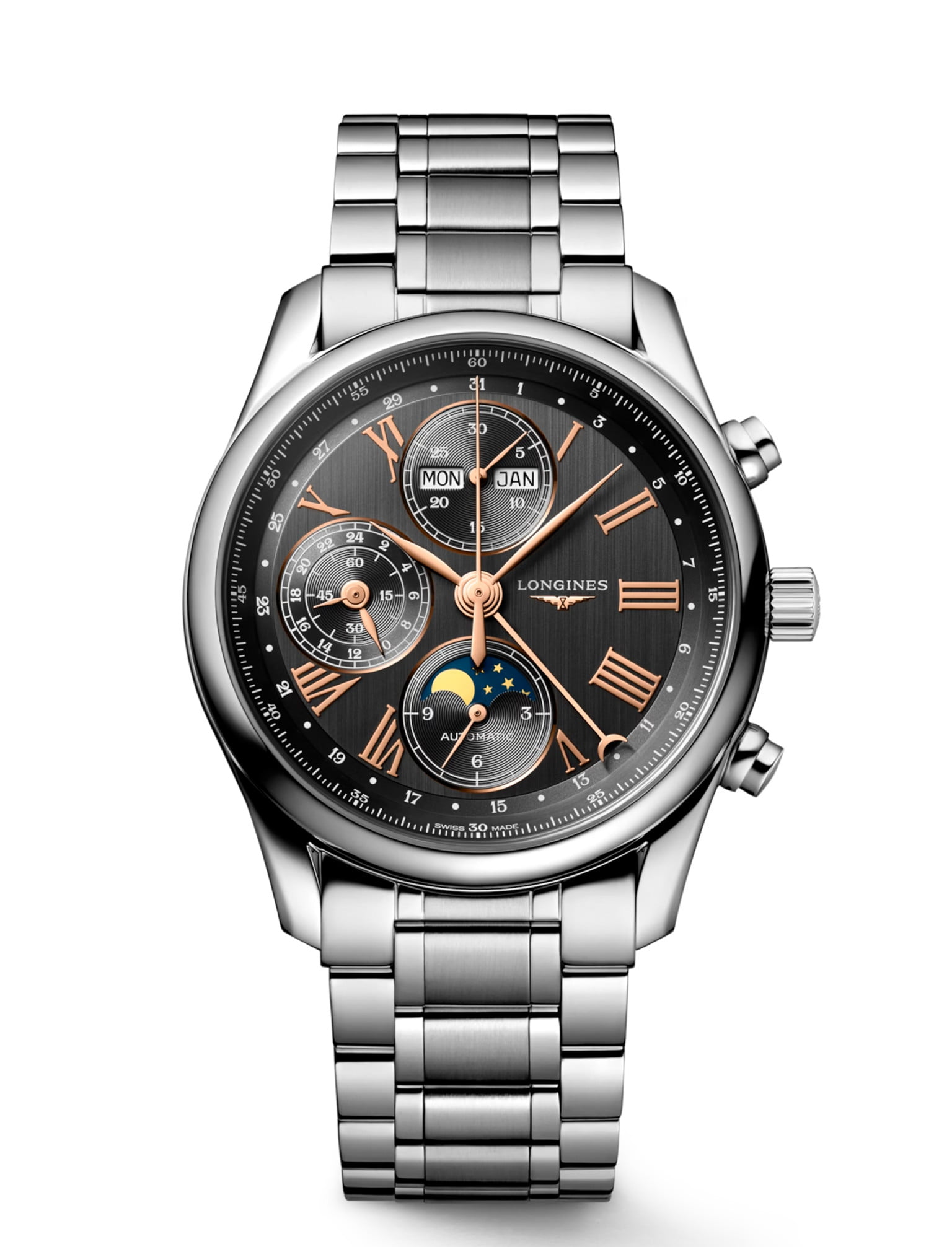 El cronógrafo de rueda de pilares, con funciones de segundero central, contador de 12 horas y contador de 30 minutos, junto con la indicación de día y mes a las 12, demuestran la maestría técnica de Longines. Experimenta la artesanía excepcional y el estilo duradero con el Longines Master Collection Moonphase, una obra maestra que trasciende el tiempo. Descúbrelo ahora y haz una declaración de elegancia con cada momento.