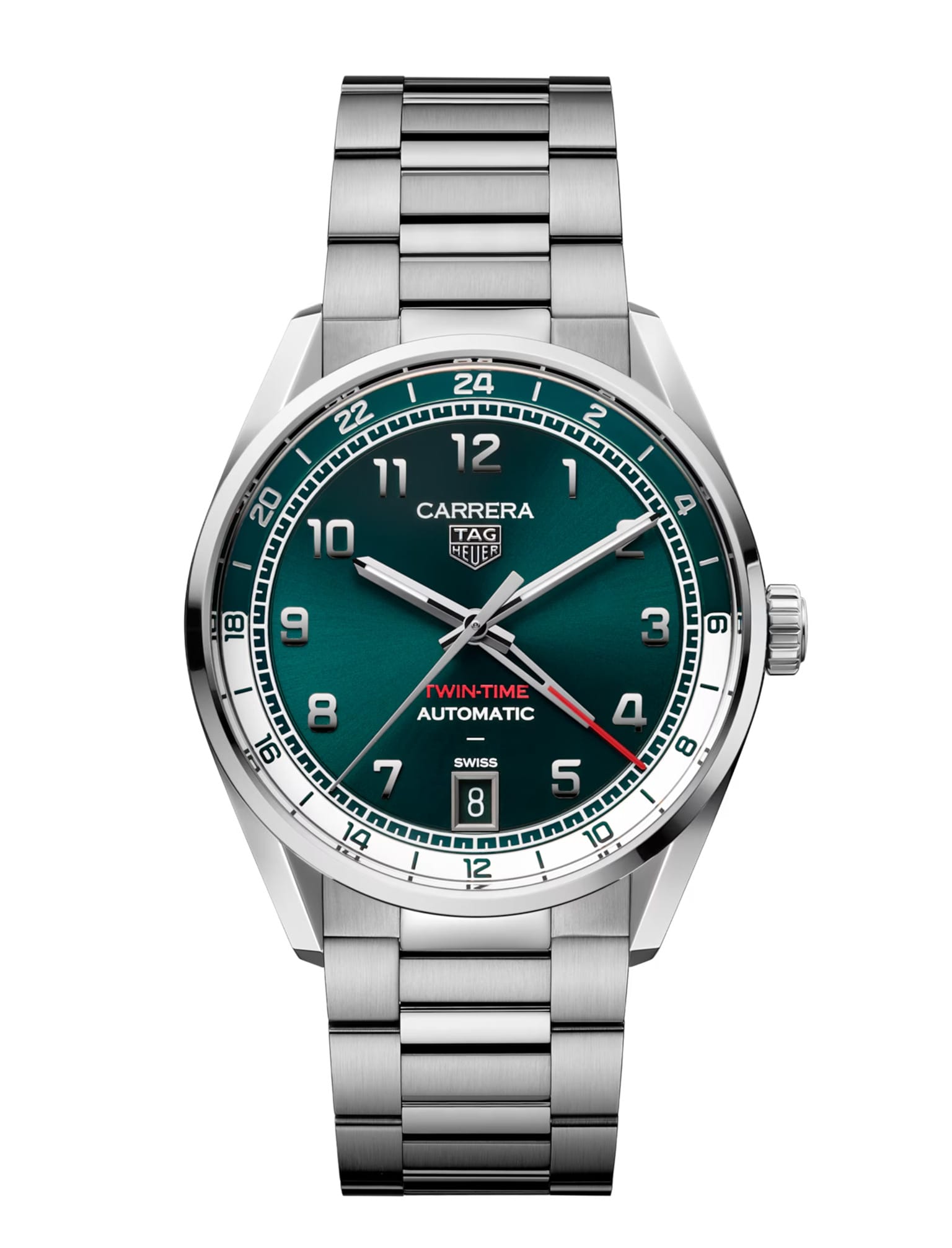 El TAG Heuer Carrera Date Twin-Time es el compañero perfecto para quienes buscan un reloj versátil, con historia y preparado para cruzar fronteras. Un homenaje al legado de Heuer, actualizado para los viajeros modernos.